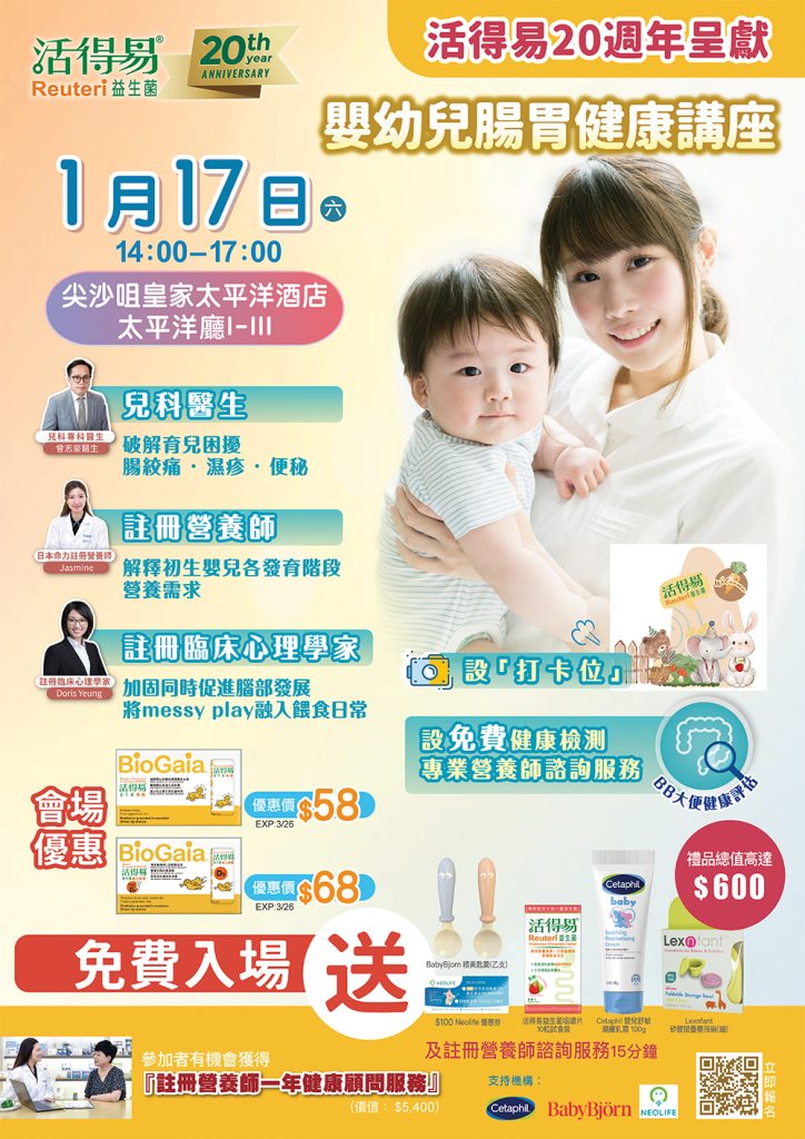 「活得易」20周年呈獻✨嬰幼兒腸胃健康專題講座,