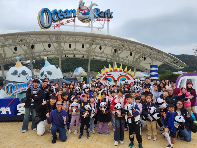 大會除了贊助入場門票,亦為一行100人準備午餐及熊貓公仔作紀念品。在各組別出發玩樂前,莊博士亦提及保育海洋的重要性:「我們的地球只有一個,若遭破壞,影響都是無法挽回的。因此大會安排餵飼海獅、企鵝及珊瑚魚等互動體驗,透過近距離接觸,加深兒童對生態保育的意識。亞洲學術慈善基金會亦為小朋友設計了尋寶工作紙,讓他們寓學習於娛樂,邊欣賞動物,邊發掘更多相關知識。